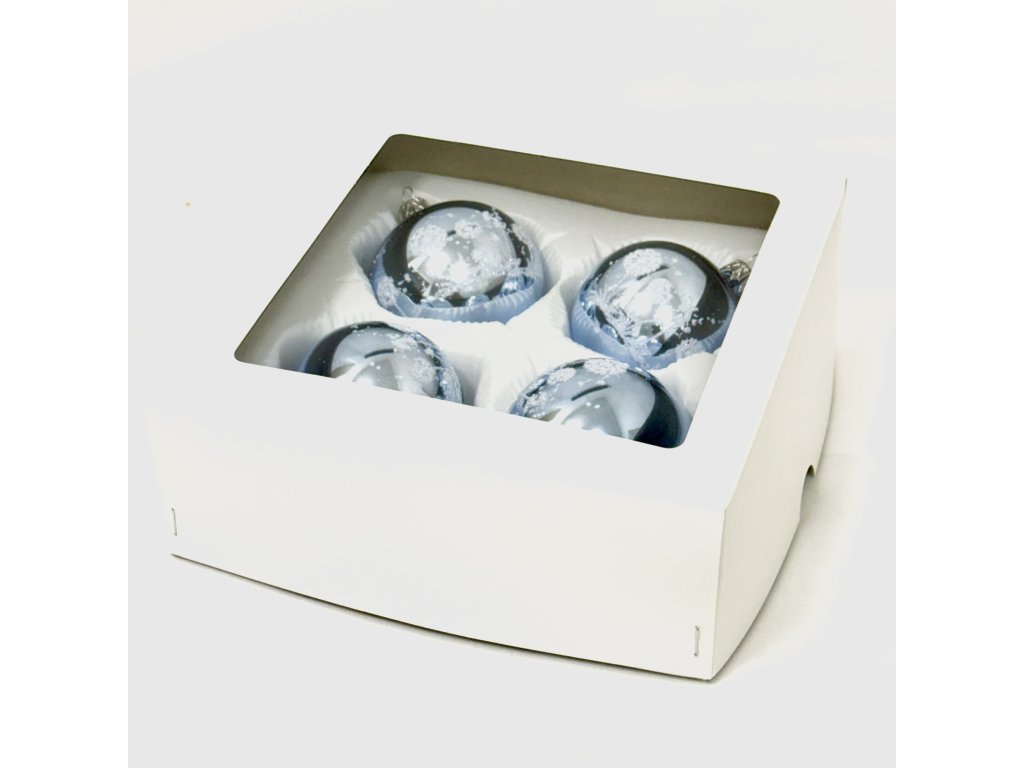 Tato sada 4 skleněných vánočních koulí o velikosti 7 cm je vyrobena tradiční technikou foukání a ruční malby ve Vsetíně. Modrý základ doplňuje jemný motiv zasněžené krajiny ve stříbrném provedení, který působí slavnostně a zároveň decentně. Každá koule je originál, který vnese do vašeho interiéru kouzlo české sklářské tradice. Tyto ručně vyráběné vánoční ozdoby jsou ideální pro kombinaci s dalšími skleněnými dekoracemi a stanou se nepřehlédnutelnou součástí vašeho vánočního stromku.Doplňkové parametry