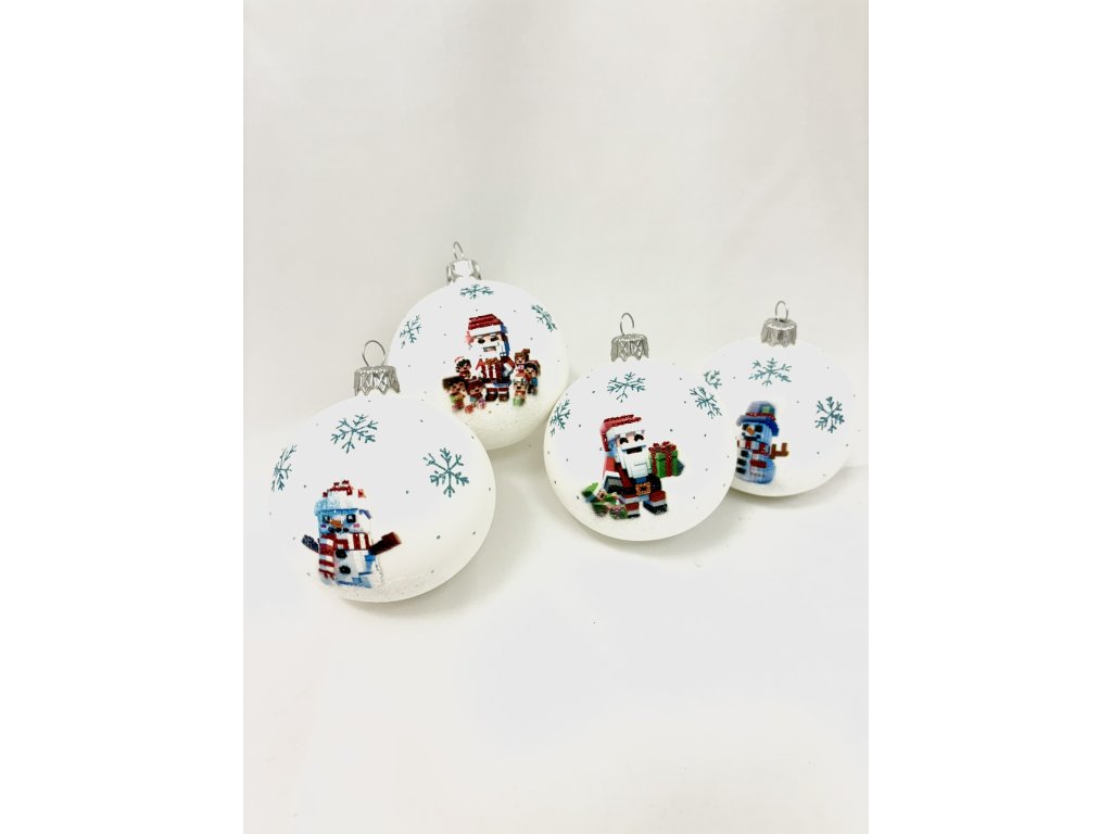 Ručně malovaná sada dvou bílých skleněných koulí o průměru 8 cm s pixelovým sněhulákem a Santou obklopeným dětmi. Vyrobeno v České republice Firma s tradicí od roku...