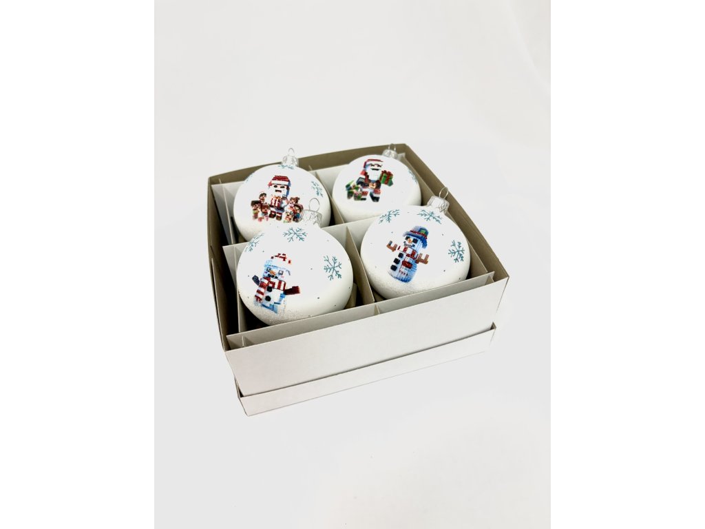 Sada Pixelové Vánoce – 4 skleněné koule 8 cm (s dárkovou krabičkou) IRISA