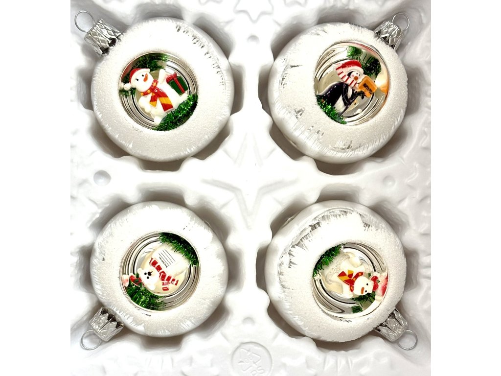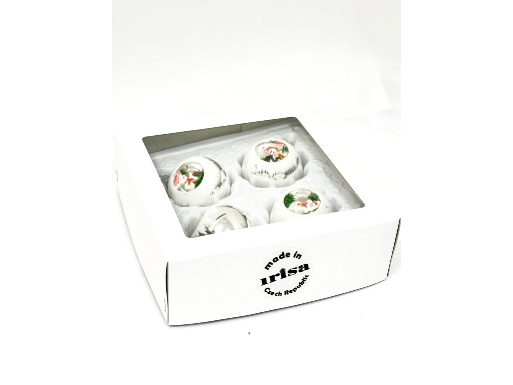 Tato kouzelná sada čtyř ručně vyráběných skleněných vánočních ozdob o průměru 6 cm přinese na váš stromeček hravou zimní atmosféru. Každá ozdoba je pečlivě foukaná ze skla a zdobená ručně malovaným motivem veselého sněhuláčka, který potěší děti i dospělé. Ozdoby mají lesklý stříbrný povrch s bílým mrazovým efektem a uvnitř se ukrývá barevná zimní scéna se sněhuláčky a vánoční výzdobou. Díky kombinaci tradičního českého sklářského řemesla a originálního designu působí ozdoby elegantně a přitom hravě. Balení obsahuje 4 kusy v pevné krabičce s průhledným víkem, takže se hodí i jako originální dárek. Tyto tradiční české foukané skleněné ozdoby jsou krásnou připomínkou Vánoc, které mají duši.