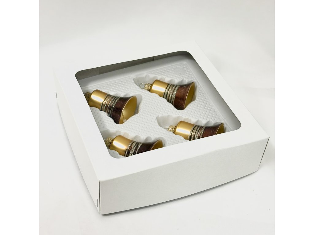 Tyto nádherné skleněné zvonky v tóninách teplé zlaté a hnědé rozzáří váš vánoční stromek noblesou i útulností. Lesklý povrch doplňují decentní stříbřitě třpytivé proužky, které ozdobám dodávají šmrnc a eleganci. Každý zvonek je ručně foukaný a malovaný v tradiční české dílně Irisa Vsetín, kde se po generace vyrábějí ozdoby s duší. Tato sada čtyř kusů v sobě spojuje klasiku, kvalitu a jemný luxus, který nikdy nevyjde z módy. Zvonky se krásně kombinují s koulemi a špicemi ve zlatých, hnědých nebo přírodních odstínech a dokonale doplní jak moderní interiér, tak tradiční vánoční výzdobu.Doplňkové parametry