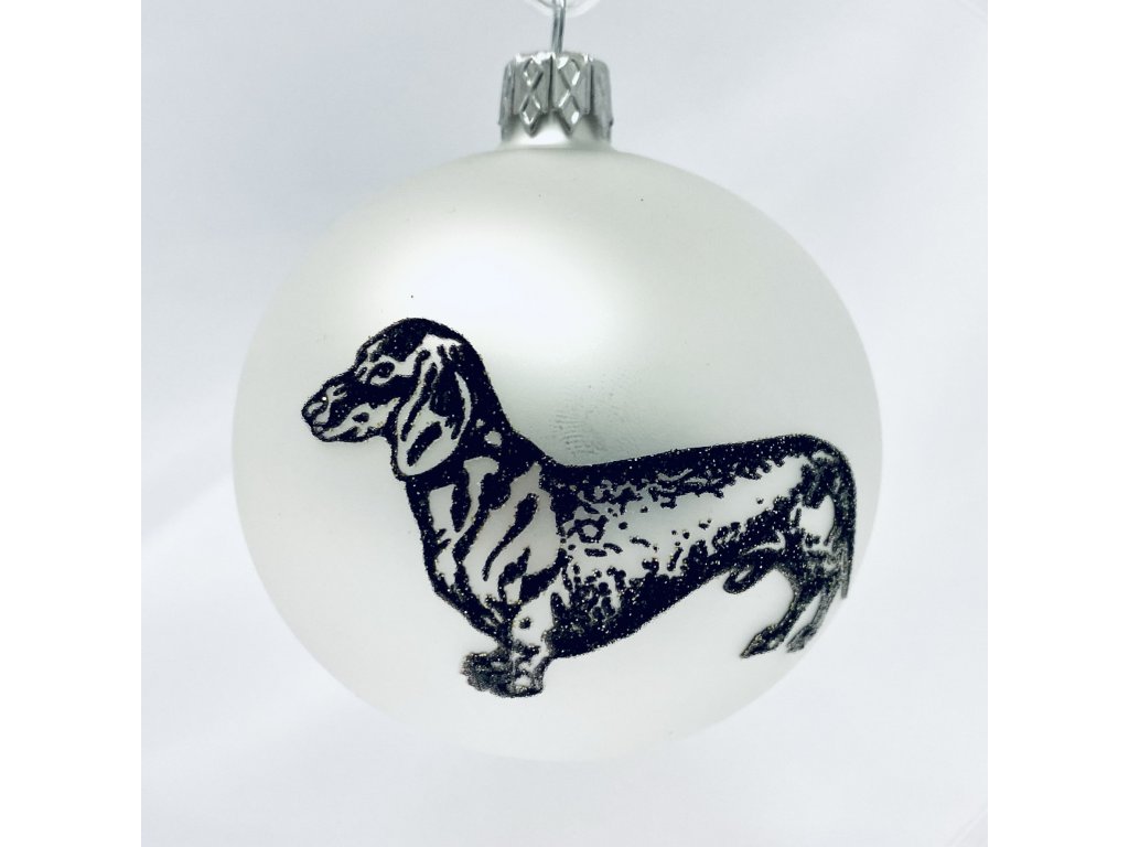 Skleněná vánoční ozdoba s textem na přání, de: jezevčík, domácí mazlíčci, 1 ks
