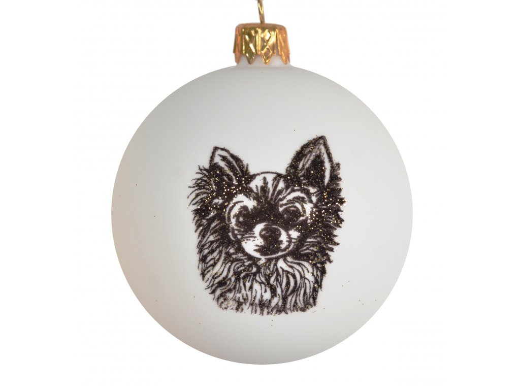 Skleněná vánoční ozdoba s textem na přání, de: čivava, domácí mazlíčci, 1 ks