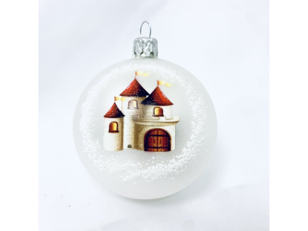 Skleněná vánoční ozdoba s textem na přání - Skleněný hrad s vlastním textem (1 ks, 8 cm)