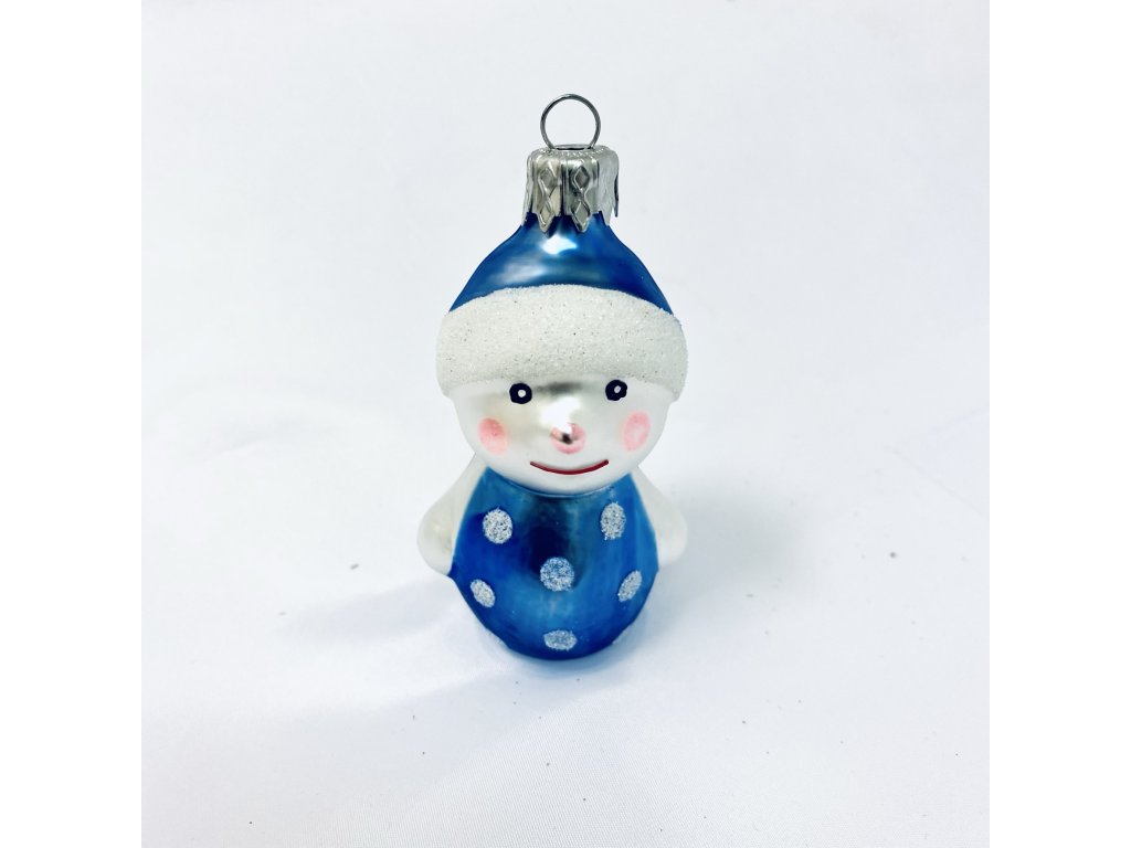 Skleněná ozdoba, ručně zdobená, dětský motiv, Sněhuláček modrý , velikost 7 cm