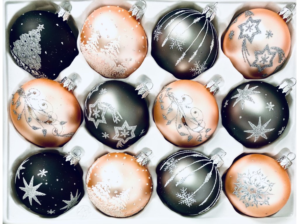 Twilight horizon - Sada 12 ks skleněných ozdob (šedá a růžová, Velikost 7cm) IRISA