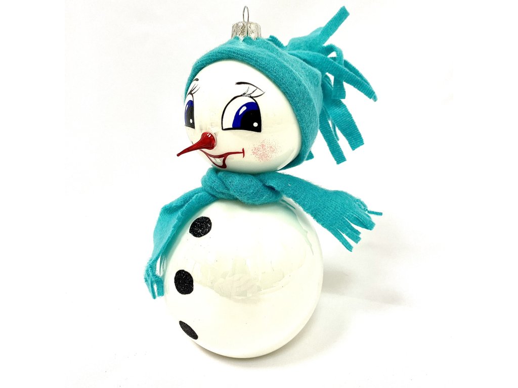 Usměvavý sněhulák s tyrkysovou čepicí, 18 cm