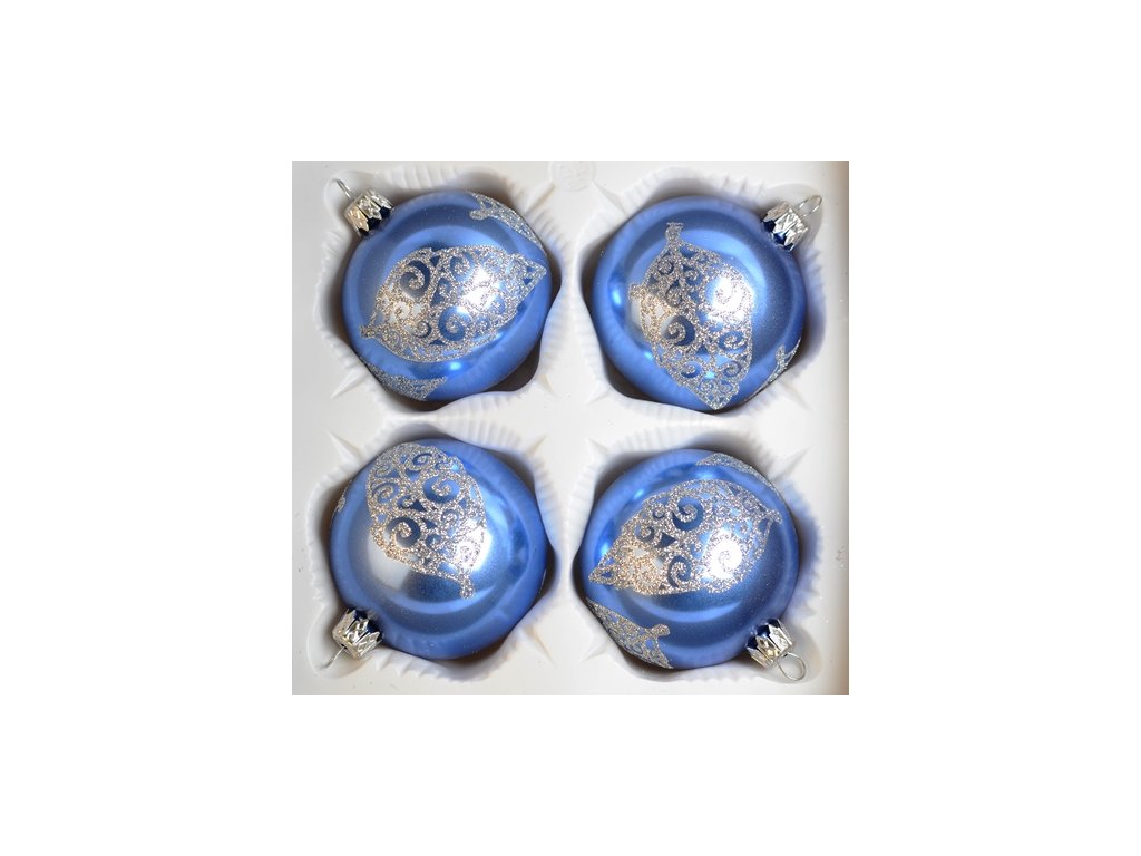 IRISA Skleněná sada Vánoční ozdoby modré 4ks, velikost 7 cm