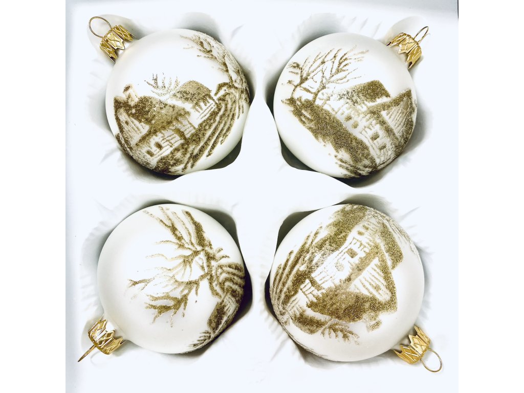 Vánoční Chaloupka - Bílá sada 4 ks skleněných ozdob (Velikost 7cm)