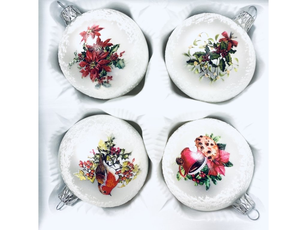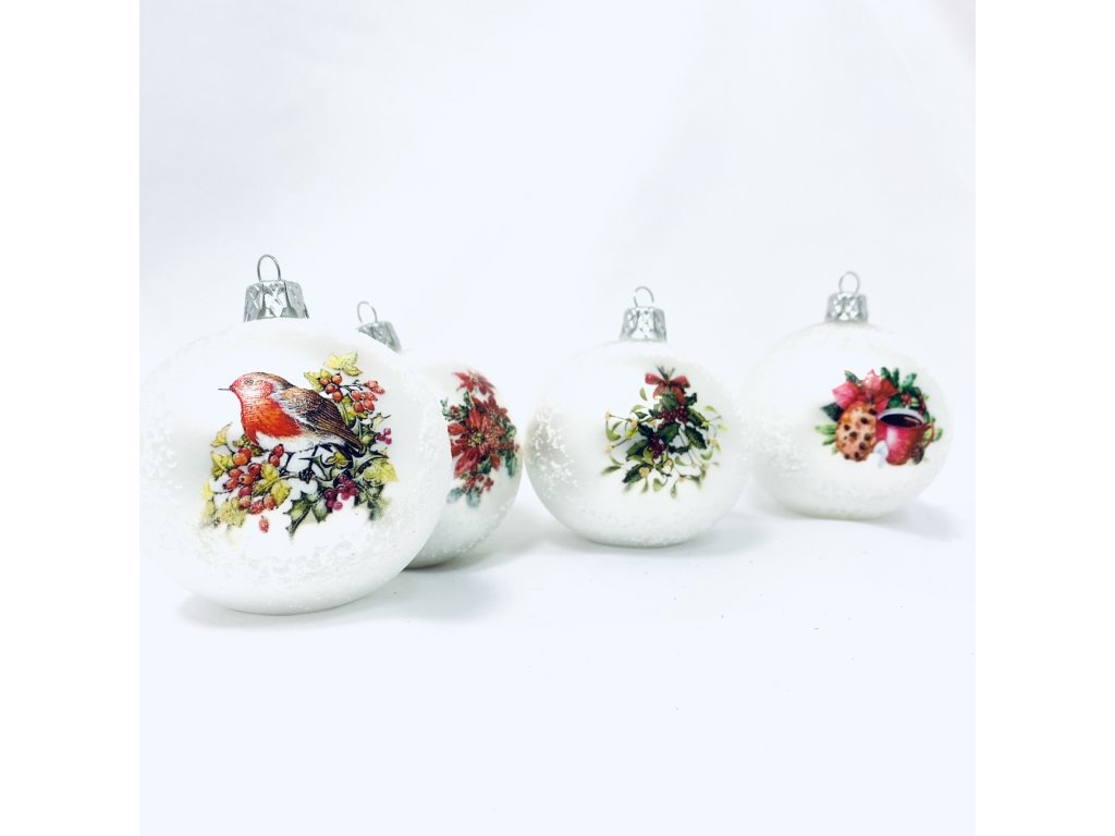 Vánoční kolekce skleněných ozdob - Květinový příběh ( bílá, 4ks, velikost 7cm)