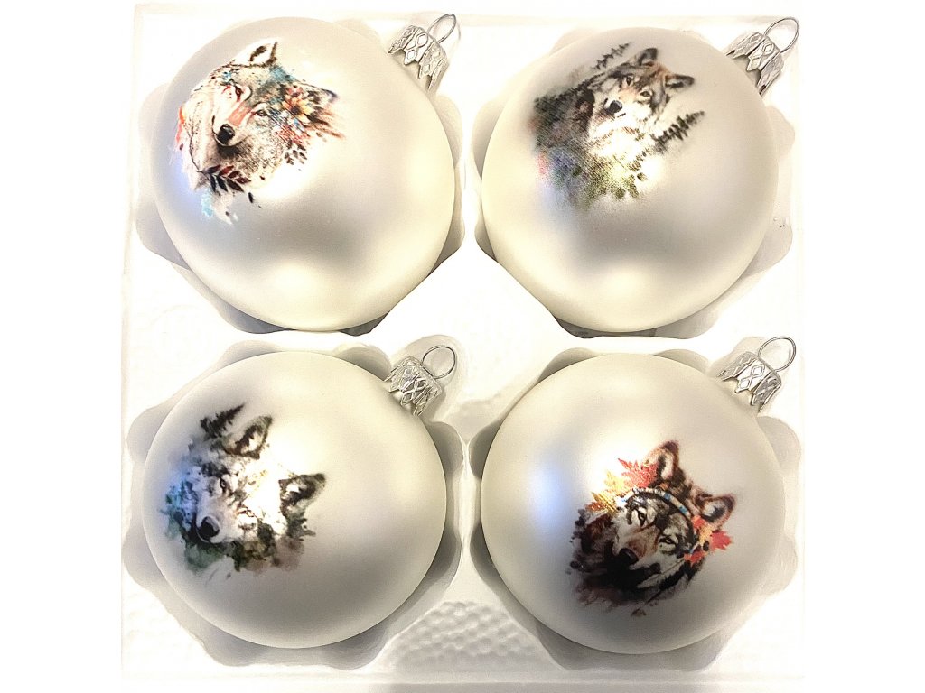 Vánoční kolekce Vlčí život - Skleněné vánoční koule - Sada 4 ks - Bílá - Velikost 8 cm