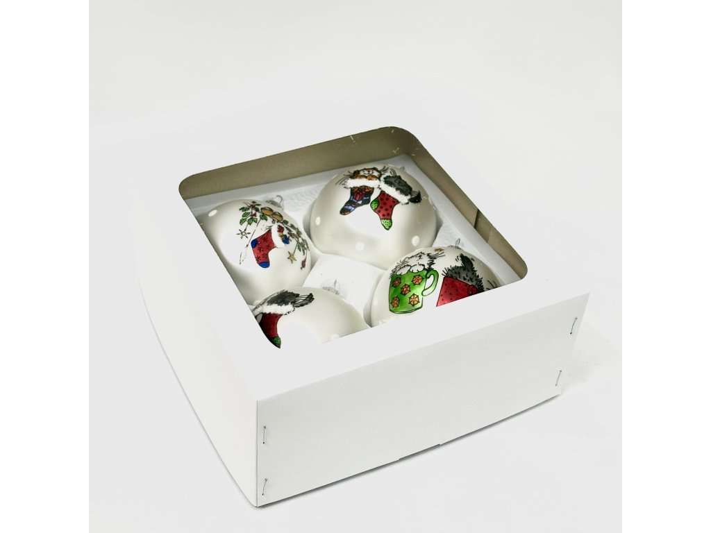 Tato hravá sada vánočních koulí přináší do vašeho domova radost, humor a dotek roztomilosti. Každá koule o průměru 8 cm zachycuje koťata dovádějící v hrníčcích nebo vánočních punčoškách, doplněná o jemné zimní detaily – vločky, cesmínu a hvězdičky. Kombinace jemného matného povrchu a barevných motivů v červené, zelené a bílé působí hravě, ale zároveň elegantně. Každý motiv je aplikován ručně v české sklárně Irisa Vsetín, kde vznikají originální ozdoby s tradicí a duší. Tato sada je ideální pro milovníky zvířat a veselých vánočních dekorací. Skvěle se hodí i jako originální dárek pro děti nebo všechny, kteří si přejí rozjasnit sváteční chvíle s úsměvem.