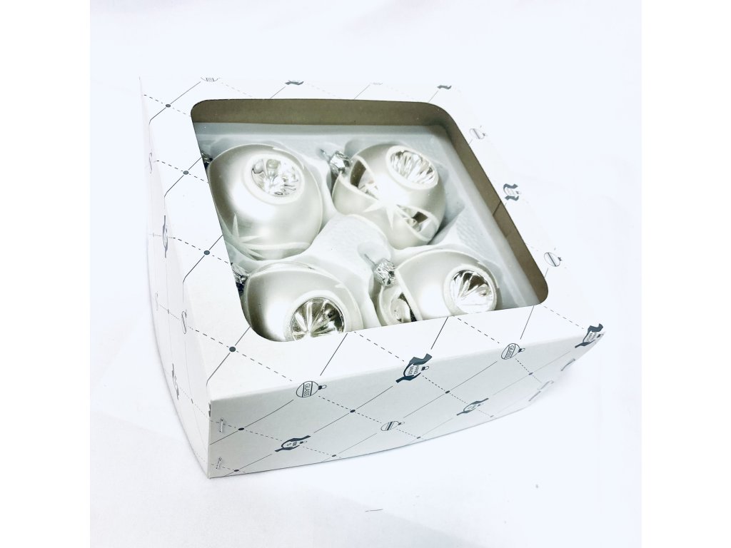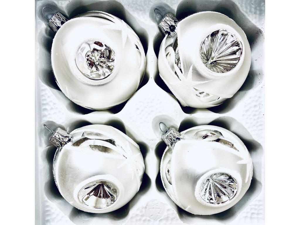 Vánoční ozdoba pro zářivé svátky - bílá, 4 ks, velikost 7 cm, s reflektorem