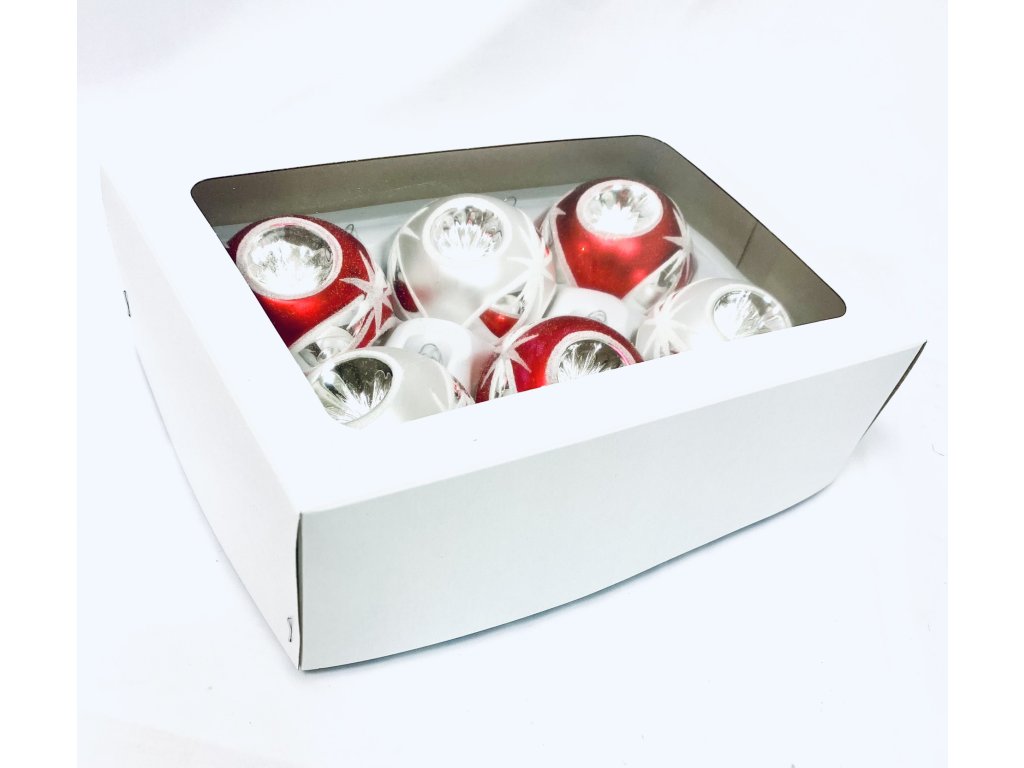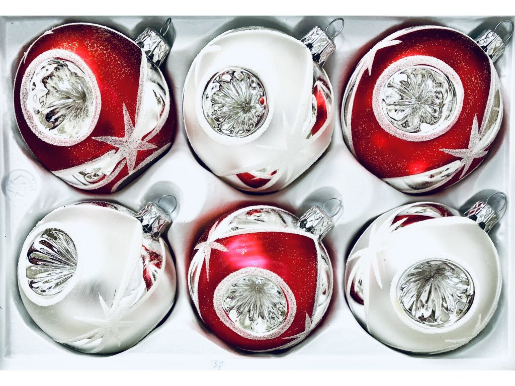 Vánoční ozdoba pro zářivé svátky - bílá a červená, 6 ks, velikost 7 cm, s reflektorem