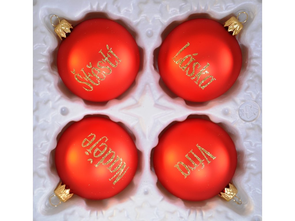 Vánoční koule, sada 4 ks, ZAMYŠLENÍ velikost 6 cm