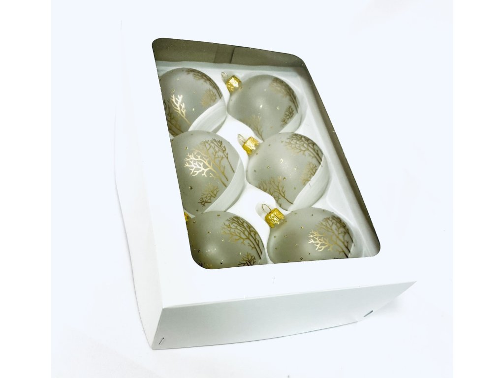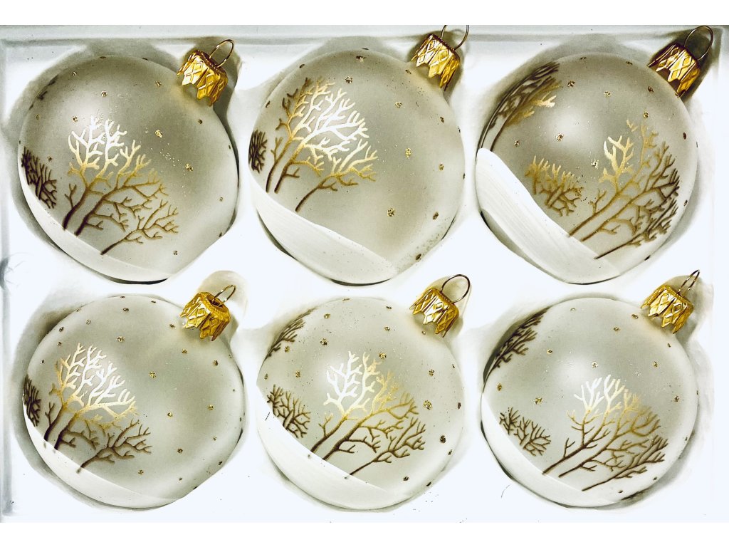 Zimní zázrak - koule se sněhovým dekorem a zlatým stromem(6 ks bílá ,Velikost 7 cm) IRISA