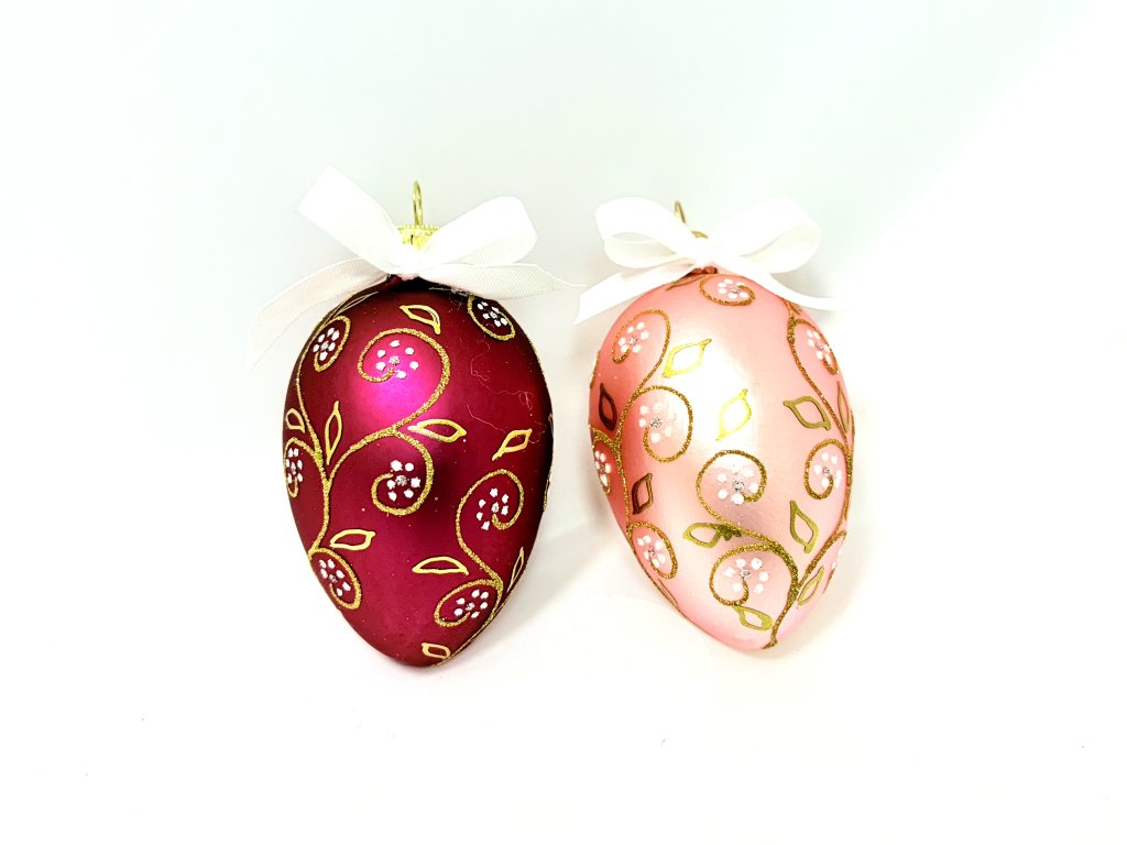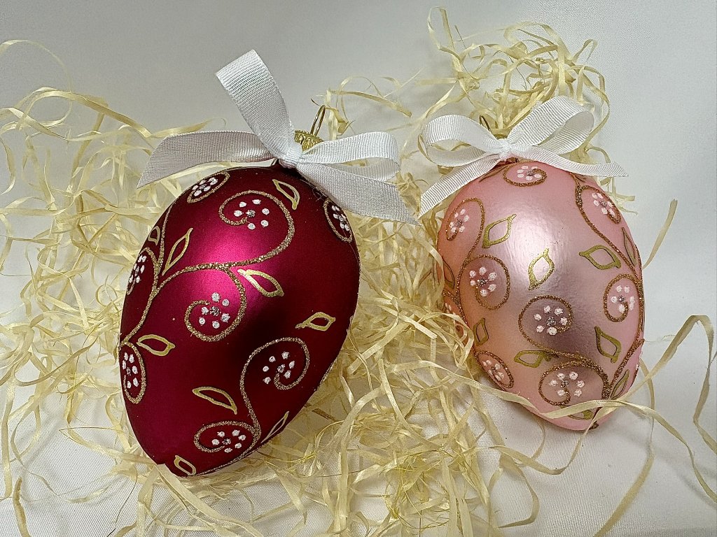 Přivítejte Velikonoce s elegancí díky této nádherné sadě skleněných vajíček. Každé vajíčko je ručně foukané a malované, zdobené květinovými vzory a jemnými glitry, které dodávají kouzlo jarní slavnosti. Sada obsahuje vajíčka v romantické červené a pastelově růžové barvě, doplněná mašličkami pro dokonalý vzhled. Tyto dekorace vyniknou na svátečním stole, v aranžmá nebo zavěšené na větvičkách. Skleněné vajíčko je symbolem jemnosti a kvality tradiční české řemeslné výroby.