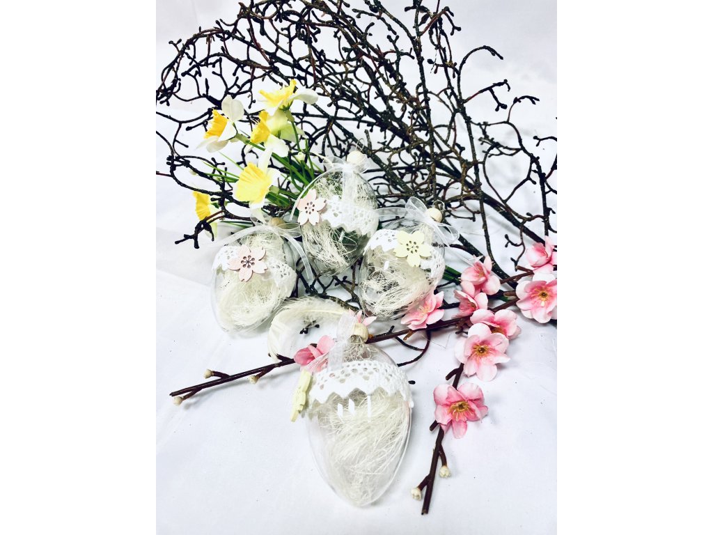 - Vlastnosti: Sada obsahuje 4 ks čirých skleněných vajíček
